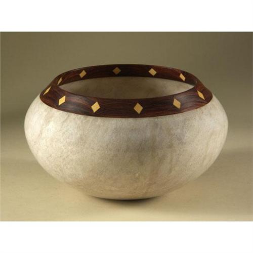 ALABASTER: Mike Phillips turned alabaster bowl with cocobolo rim. 5.5'' H x 9.5'' D. Signed on bottom, Mike Phillips, '97, Alabaster/Cocobolo