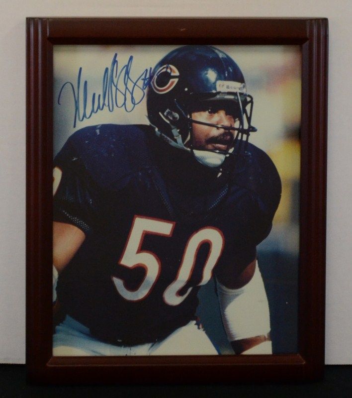 Signed by Michael Singletary #50 with blue sharpie. No COA. EST 60.00-70.00