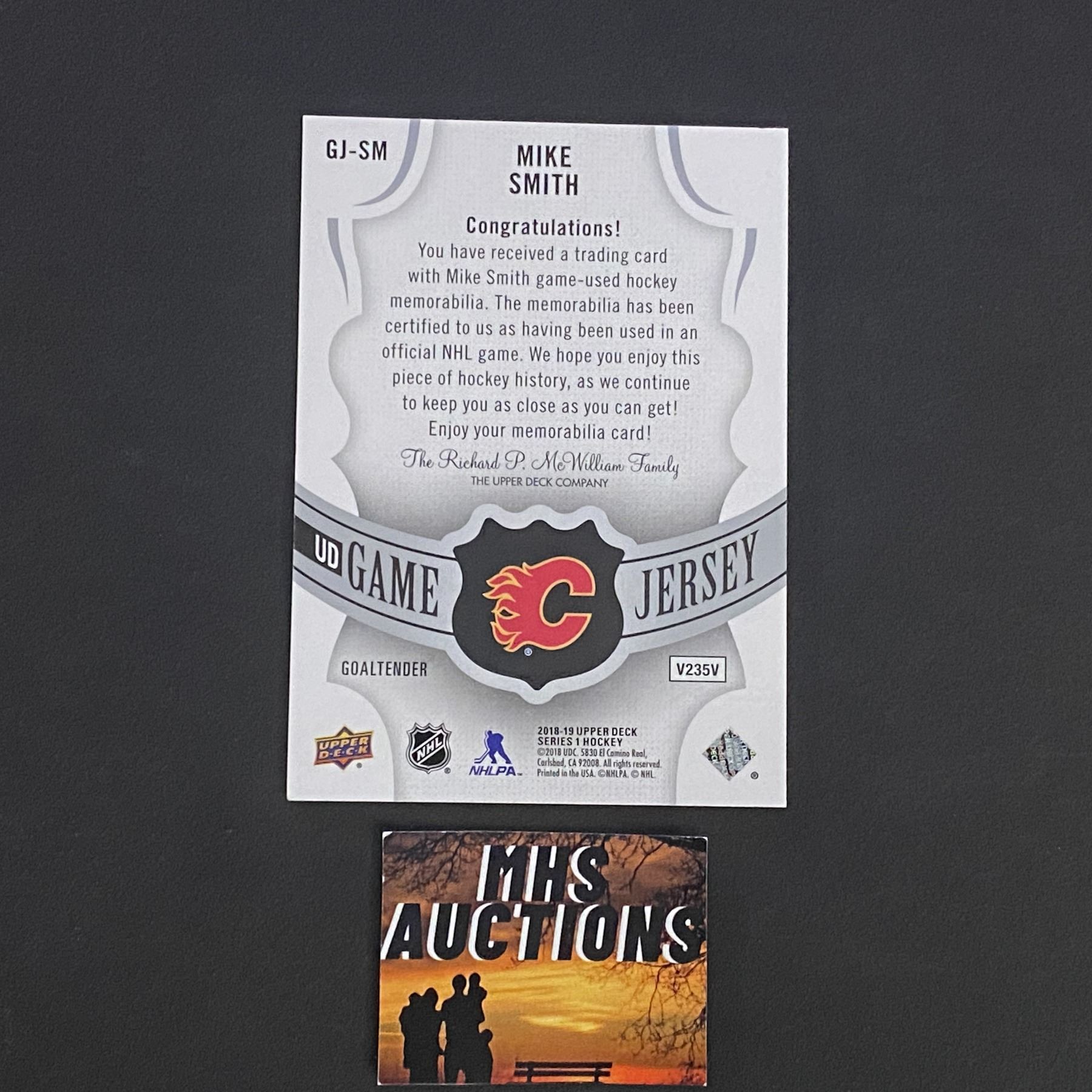 MIKE SMITH 2018-19 U.D SERIES 1 JERSEY CARD