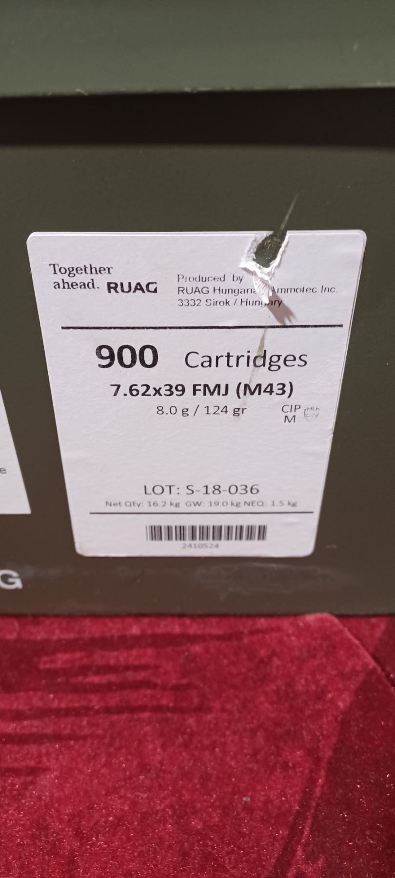 MILITARY AMMO BOX COMES WITH 900 7.62 X 39MM FMJ