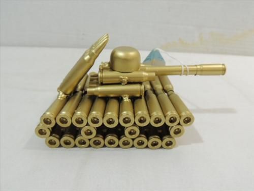 MILITARY ART CRAFTED TANK OF BULLET SHELL CASINGS. AS SHOWN. VIEW PICTURE FOR DETAIL.