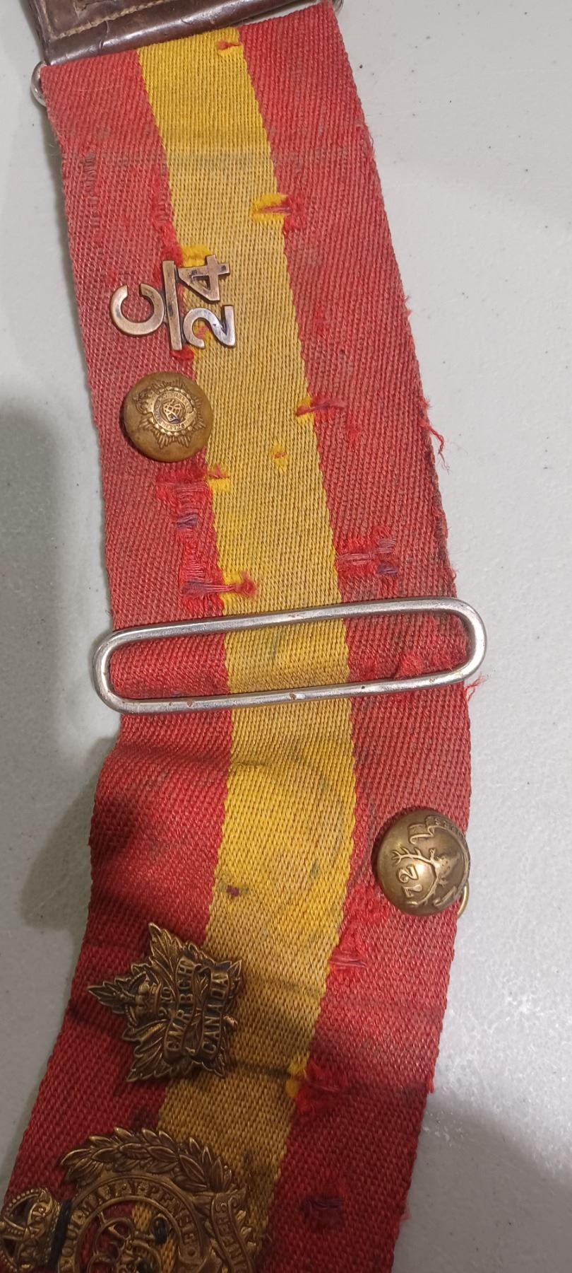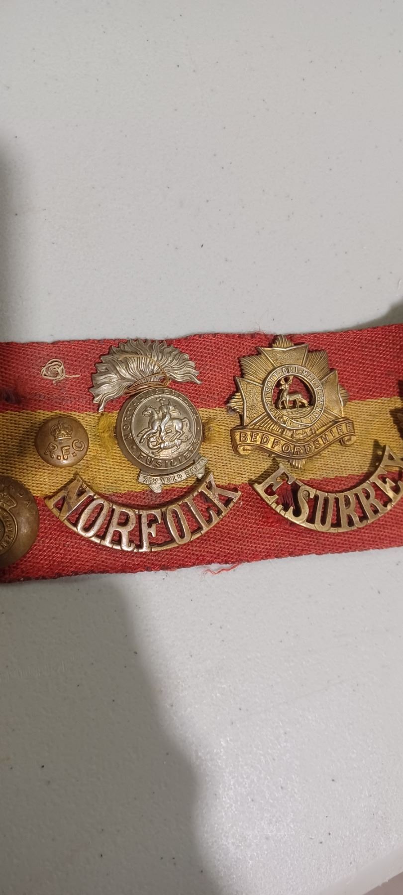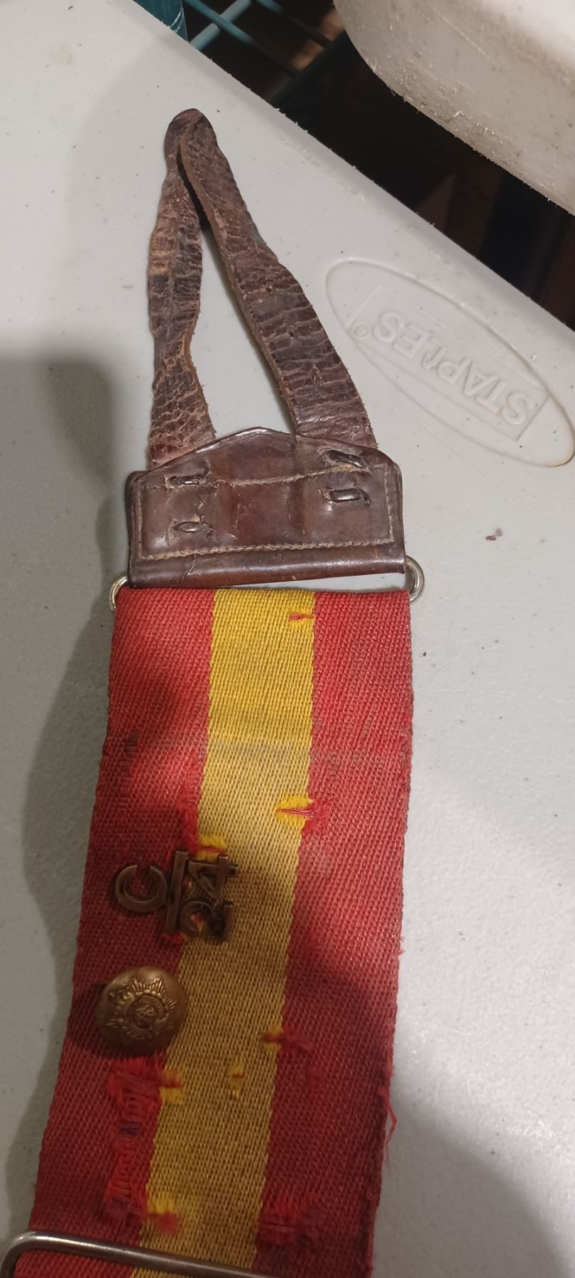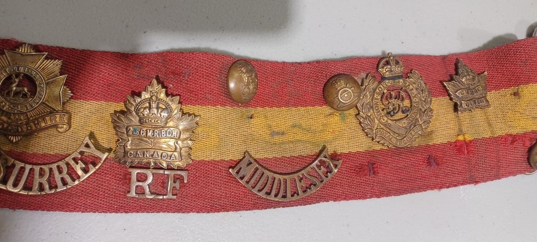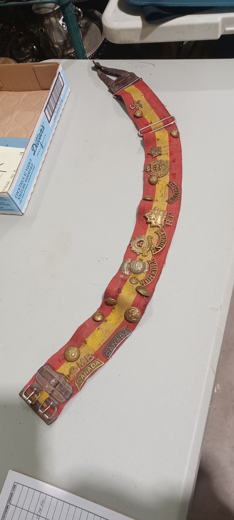 MILITARY CLOTH BELT C/W WITH MANY BUTTONS AND BADGES SEE DETAILS