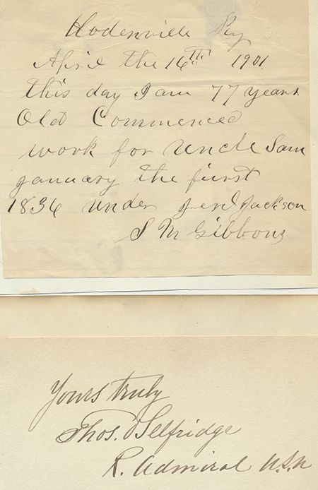 A group of seven signatures of notable military men, all cut signature format, includes: FREDERICK LAWTON, NICHOLAS M. HEPHNER, THOMAS SELFRIDGE, HUGH H. GORDON, JR., FRANK D. BALDWIN, S. M. GIBSON and more. Mounted or bearing mounting traces, very good.