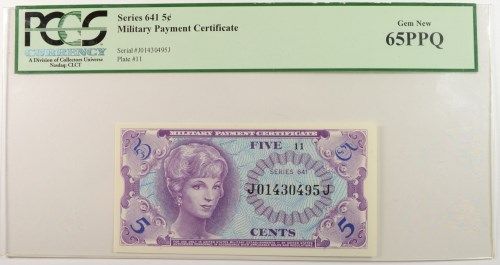 MILITARY PAYMENT CERTIFICATE, SERIES 641 FIVE CENT, PCGS 65 PPQ