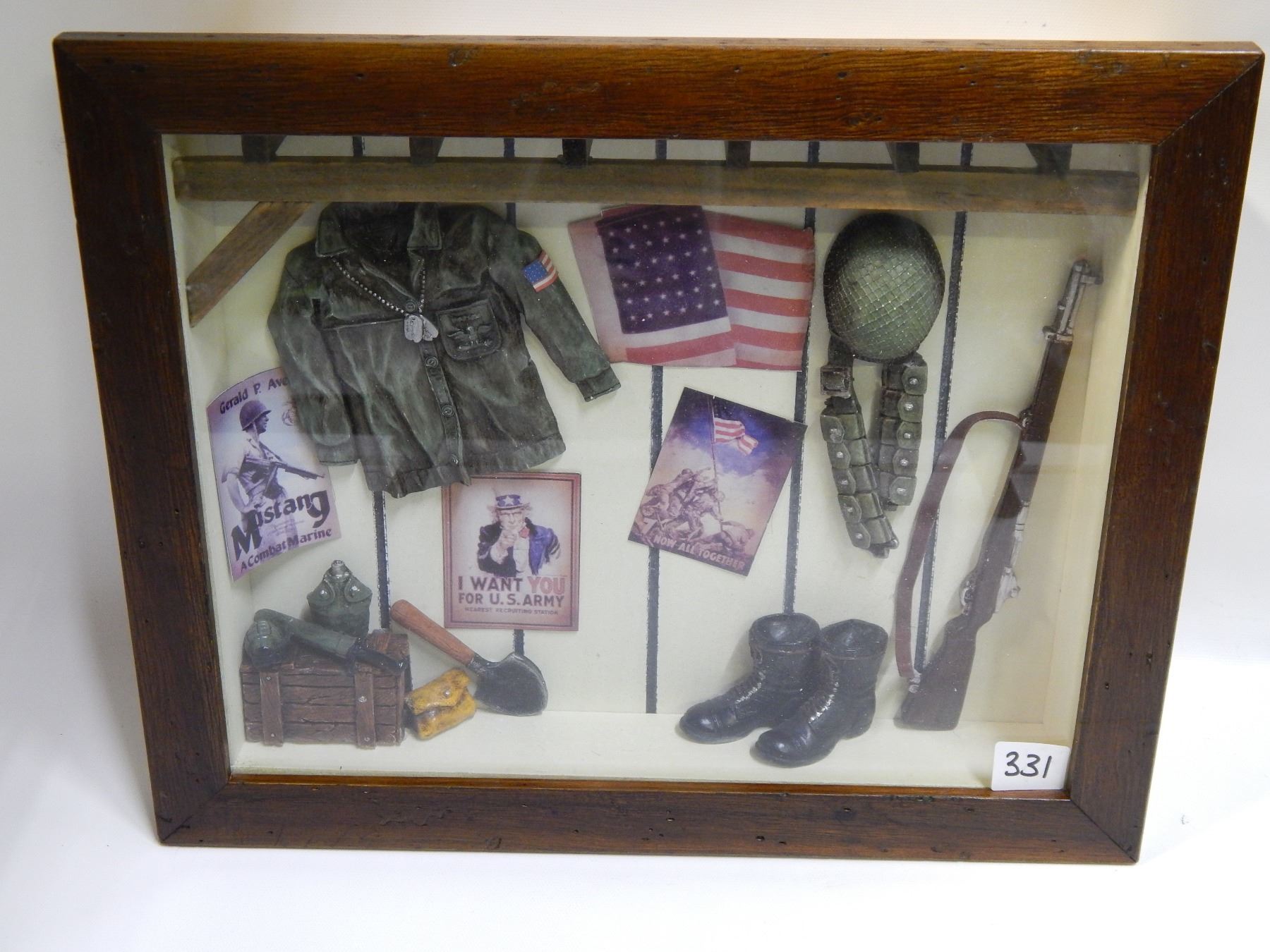 14X11 MILITARY PICTURE BOX WITH MILITARY EQUIPMENT IN SIDE