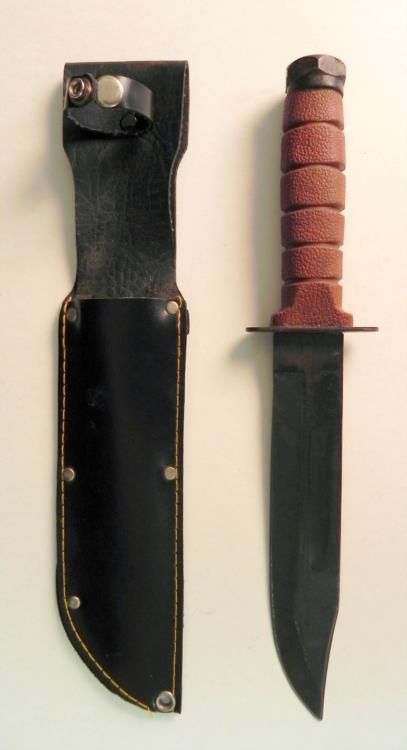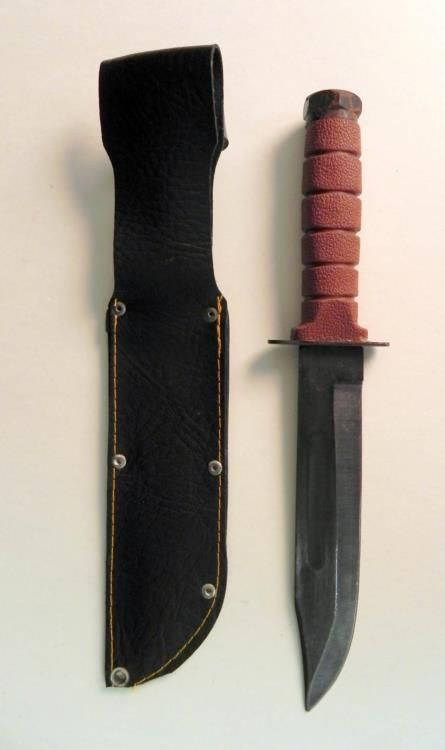 MILITARY TYPE FIGHTING & SURVIVAL KNIFE & SHEATH-7 1/4" BLADE---COMPOSITE GRIP AND A HEAVY DARKENED STEEL BLADE AND POMMEL--BLACK SHEATH WITH SECURING SNAP RING