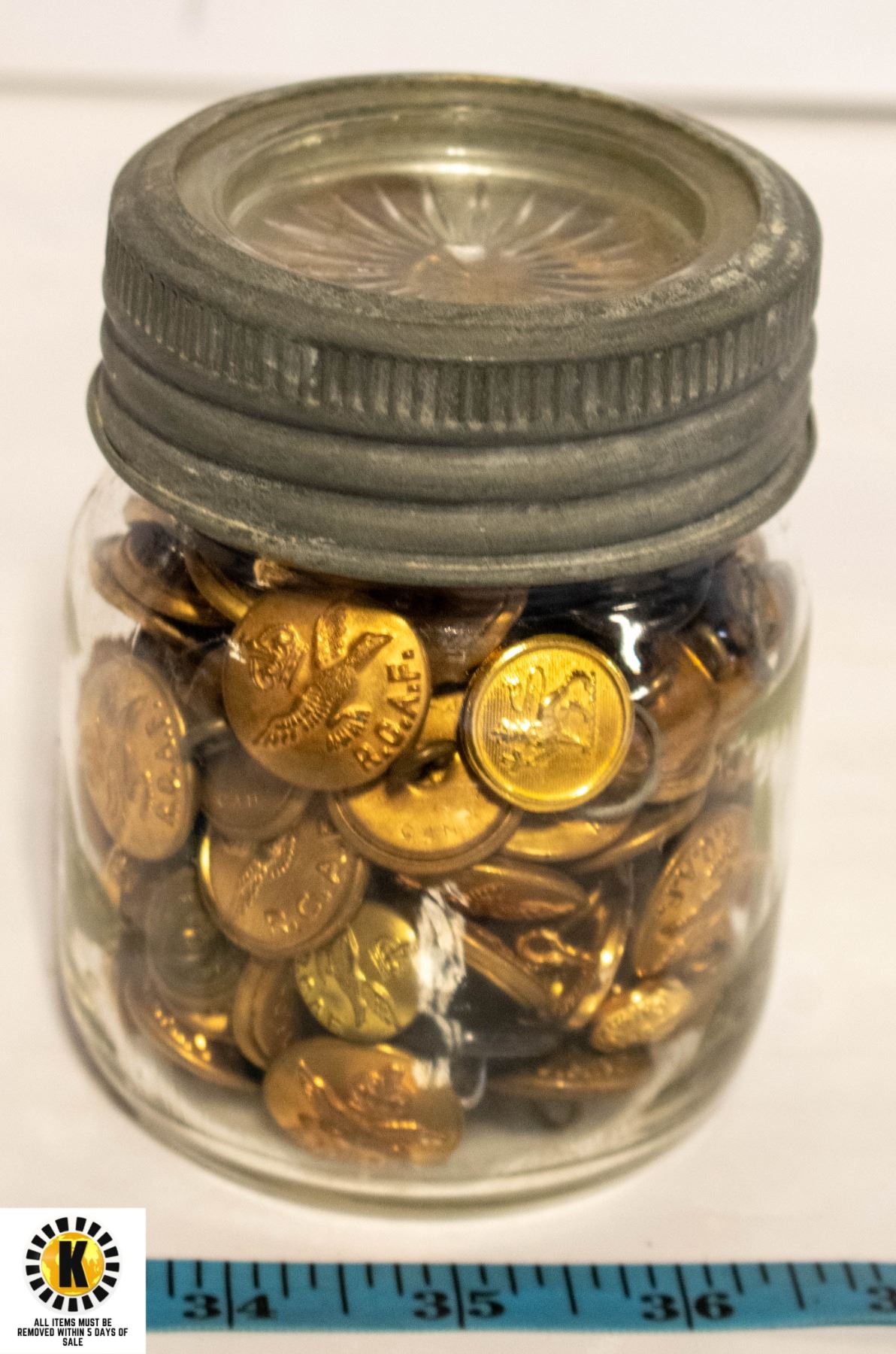 MILITARY VINTAGE BRASS BUTTONS- JAR LOT ASST.