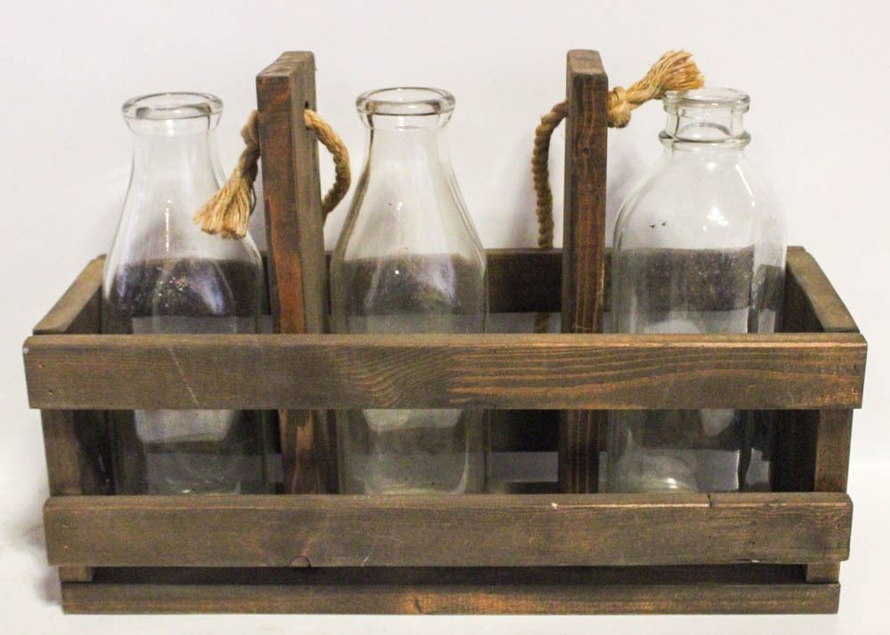 MILK BOTTLES IN WOODEN BOX