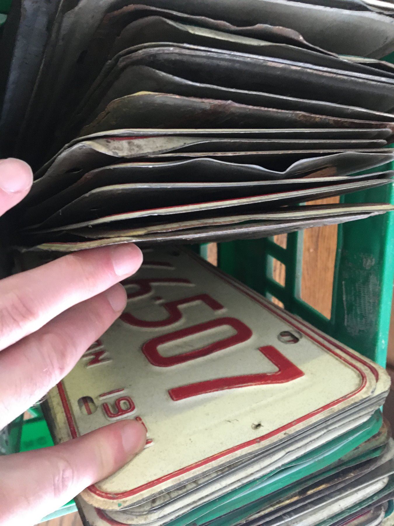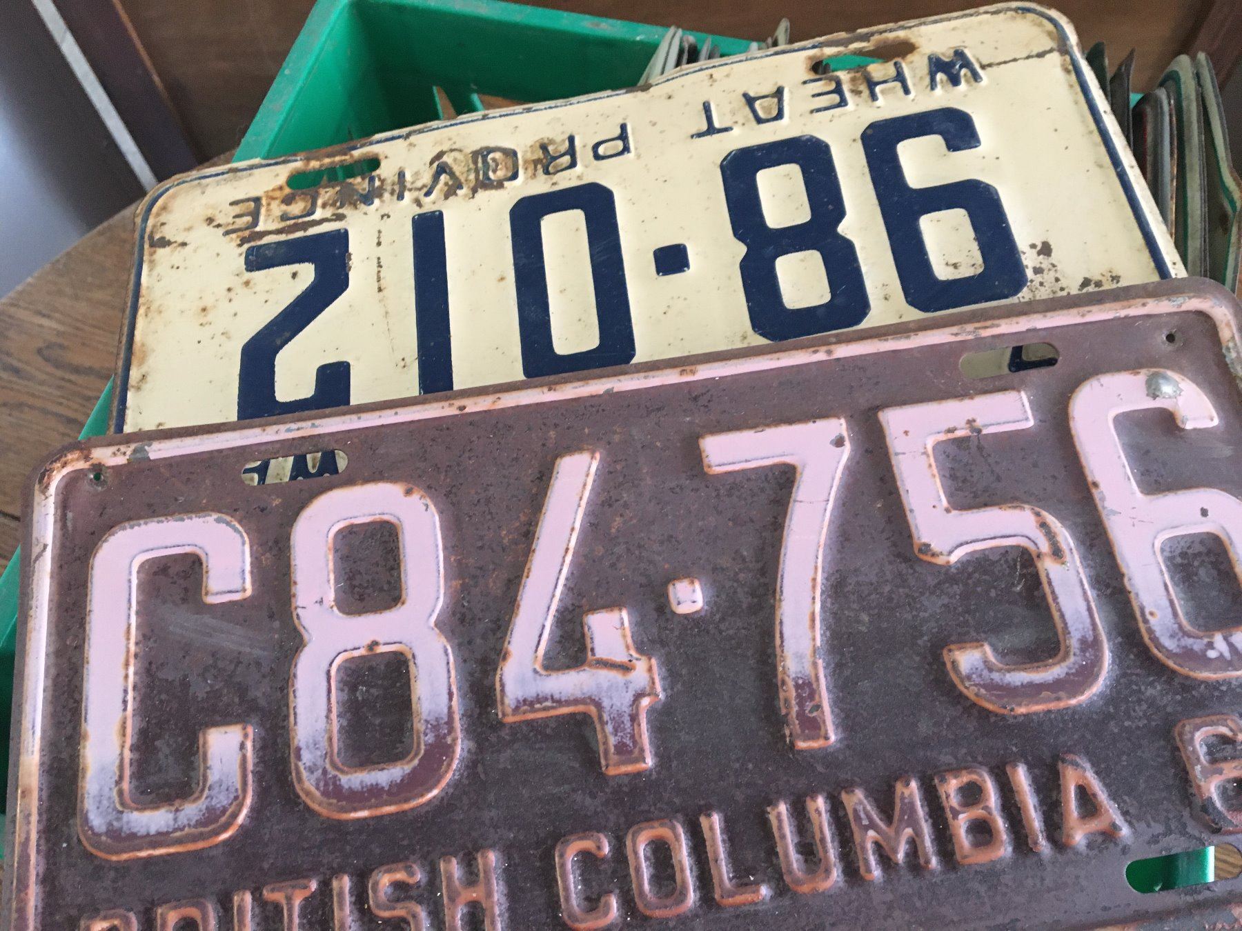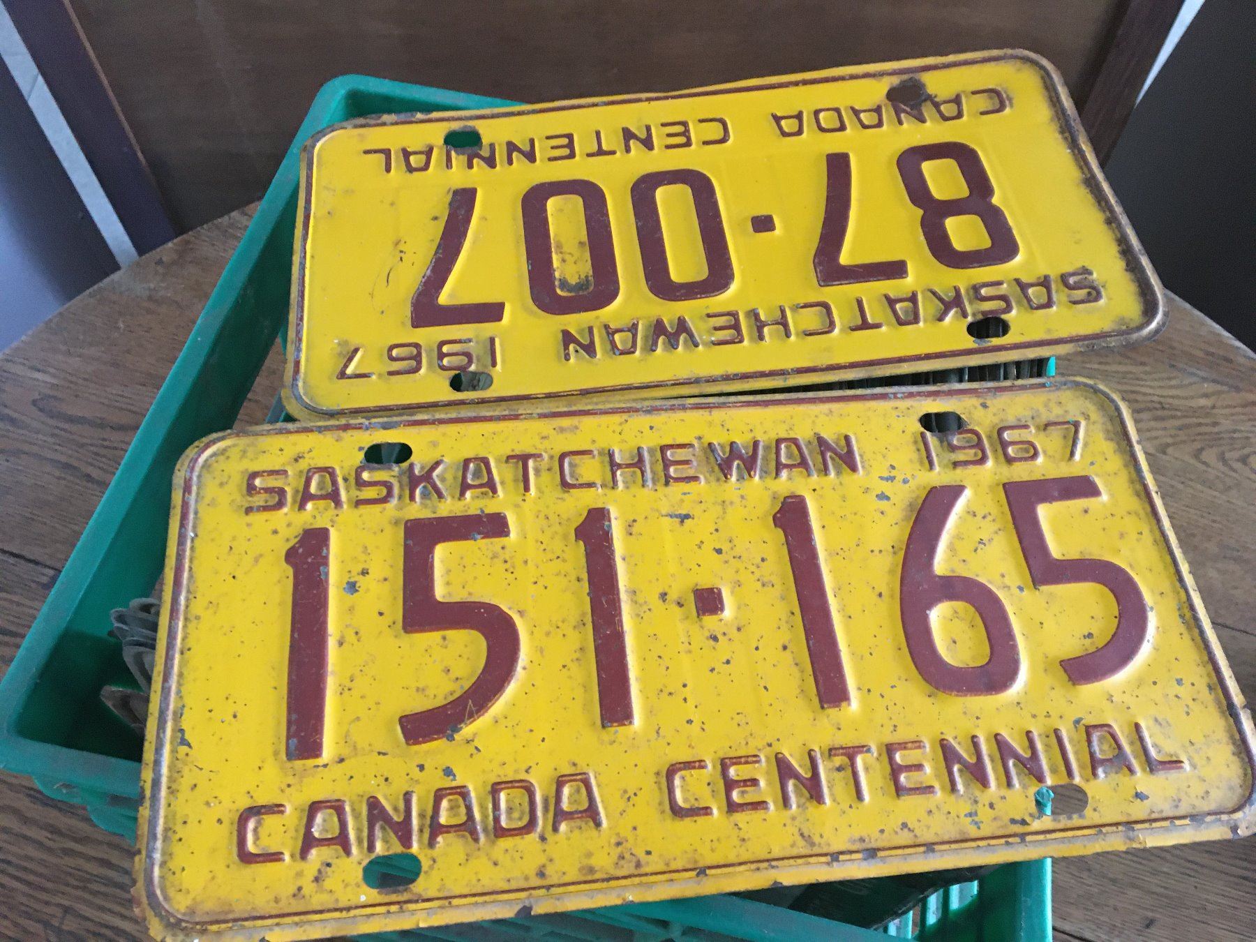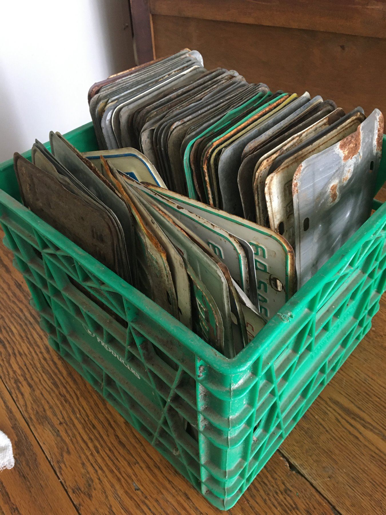 MILK CRATE OF LICENCE PLATES MOSTLY SASK