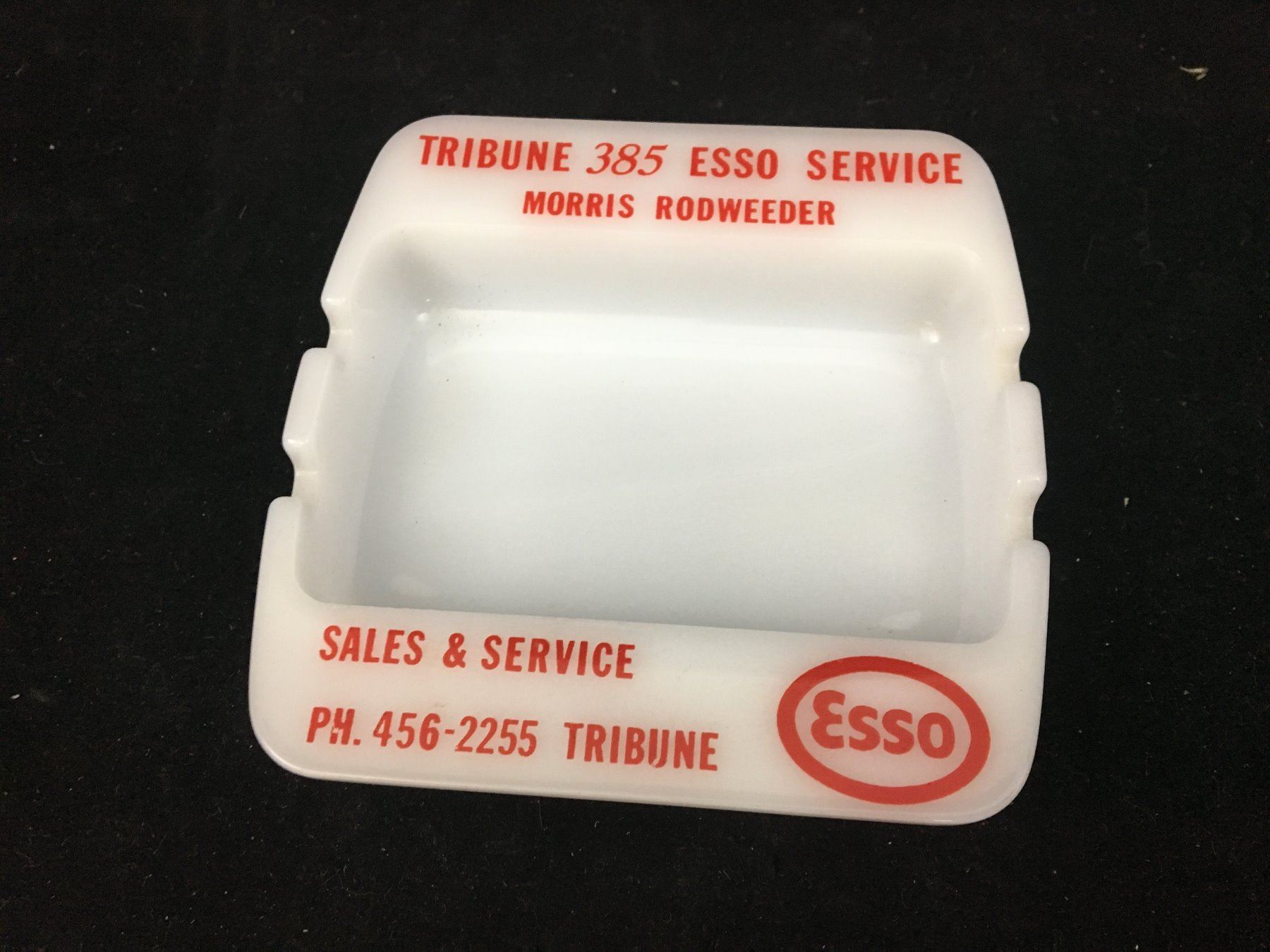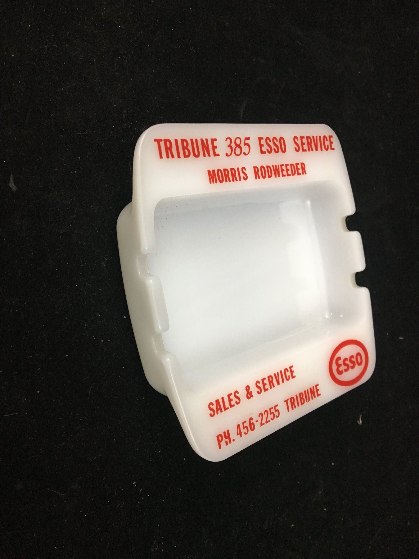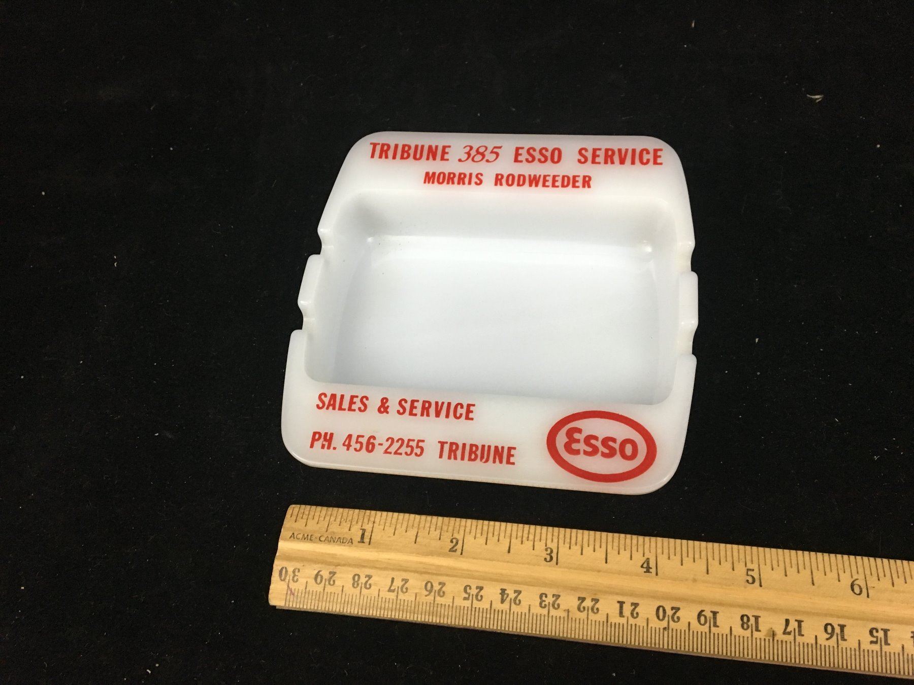 MILK GLASS ADVERTISING ASHTRAY (ESSO) *TRIBUNE SASK*