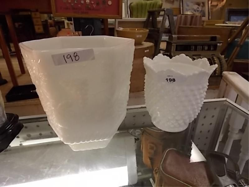 MILK GLASS CONTAINER & ONE OTHER WHITE VASE