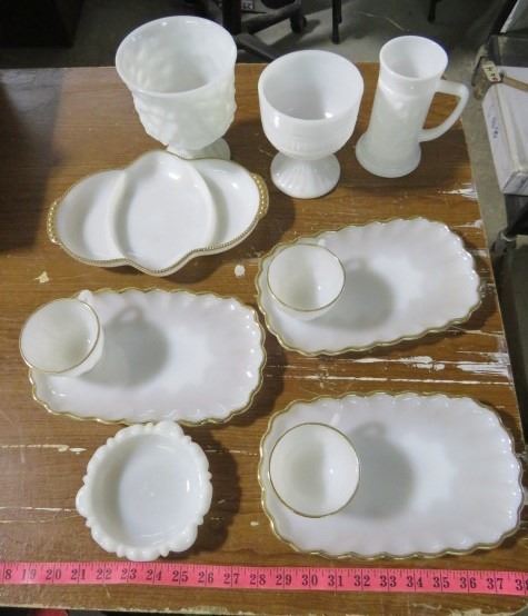 MILK GLASS (FIRE KING GUILDING) *11 PIECES*