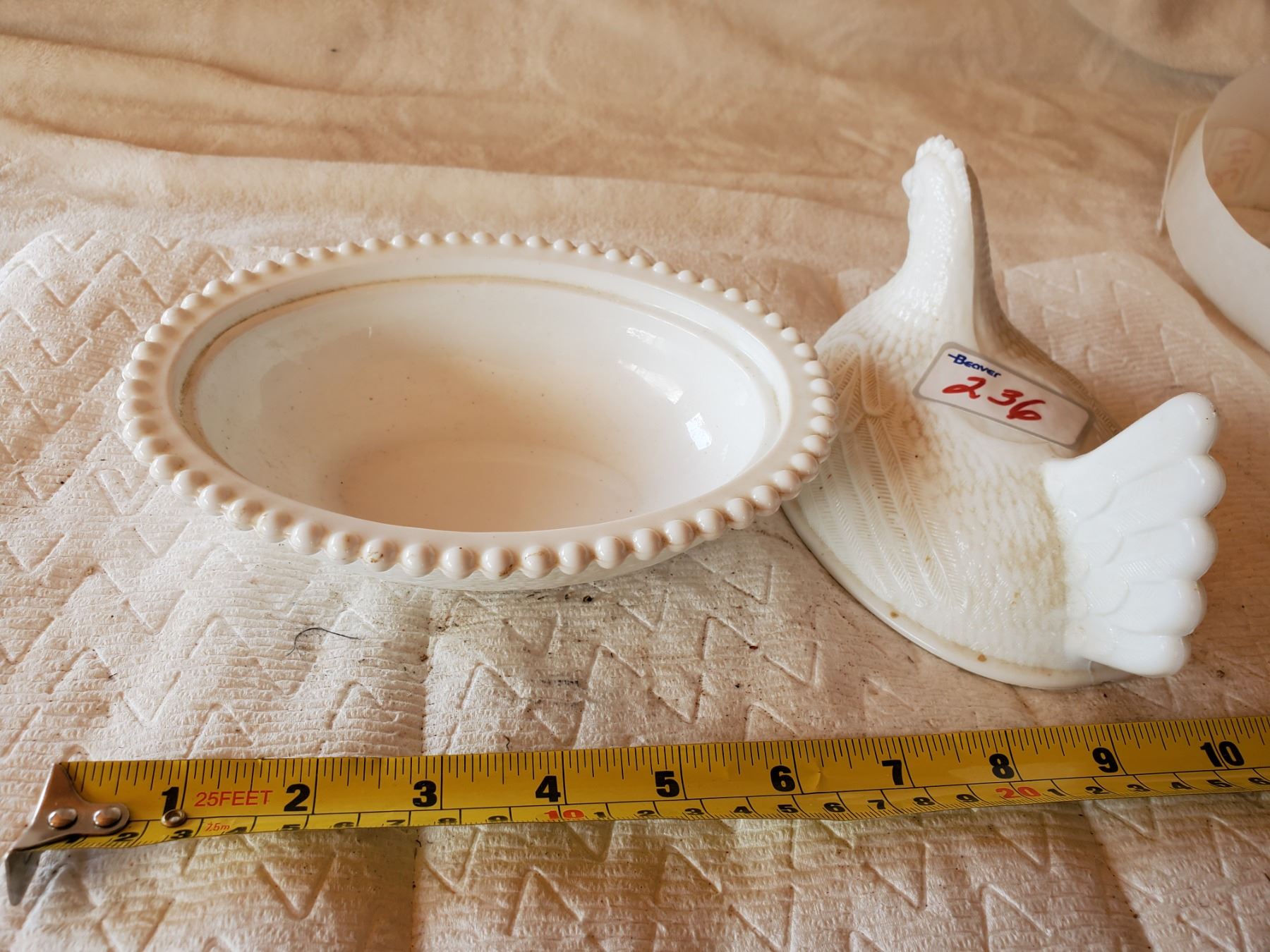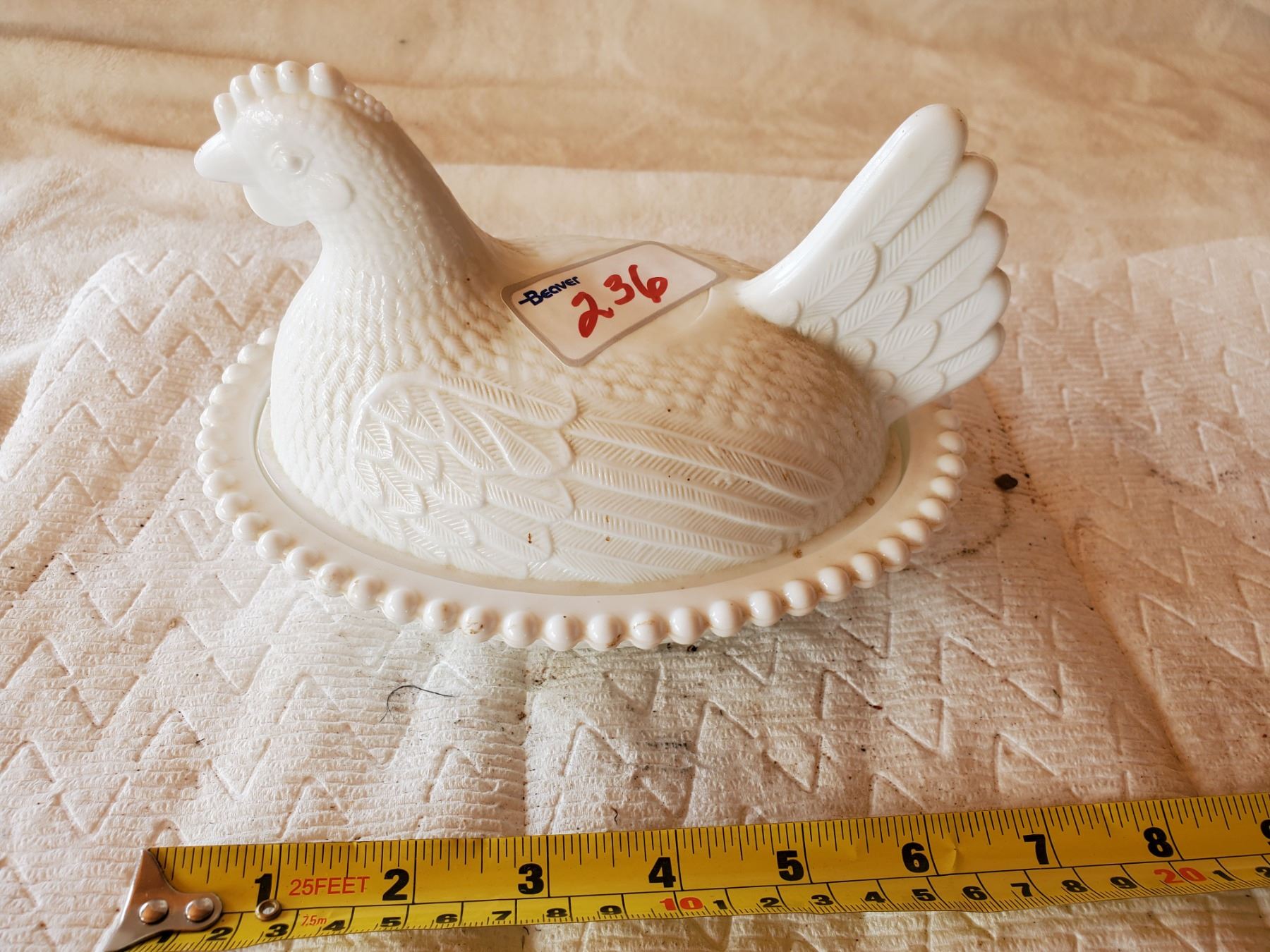 MILK GLASS HEN ON A NEST, NO CHIPS OR CRACKS