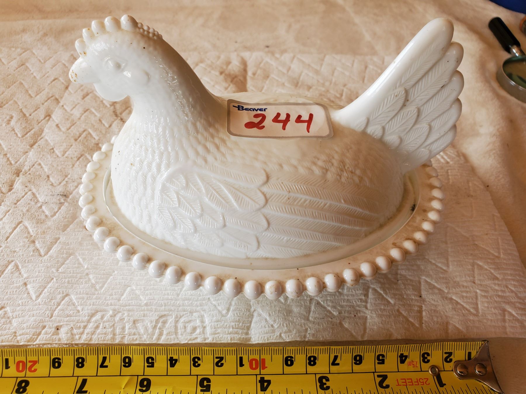 MILK GLASS HEN ON A NEST, NO CHIPS OR CRACKS
