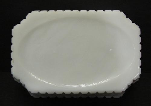 MILK GLASS COVERED DISH. Top of lid displays a seated figural lion. 4” H