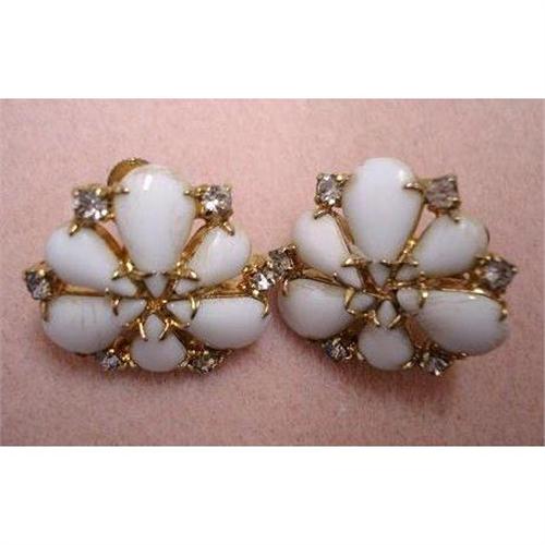 <tr><td>Title:MILK GLASS & RHINESTONE EARRINGS </td></tr>
