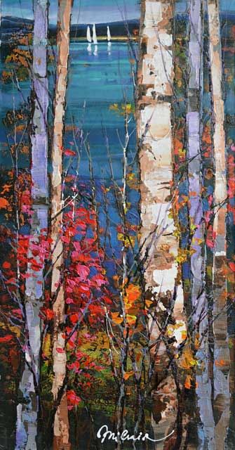 MILKIN **AUTUMN MORNING** SIGNED ORIGINAL. Artist: Michael Milkin (b. 1972) - Title: Autumn Morning - Medium: Original Acrylic on Canvas - Signature: This one-of-a-kind work is hand-signed by the artist at the bottom of the image - Image Size: Approximately 30 inches x 15 ¾ inches - Framed: Unframed on Unstretched Canvas - Details: This work comes with a Certificate of Authenticity - Biography: In 1964 Michael Milkin was born in Kharkov in the Ukraine. He was a student of Architecture at the town's university and participated in several art exhibitions. After graduating, he worked as an architect, but all the while he kept painting and participating in public exhibitions. Soon after, Milken started teaching fine arts and in the late nineties, his works were exhibited in art shows all over Ukraine, France and Germany - Michael Milkin concentrates on still lifes and landscape, which he paints expressively with thick brushstrokes and vibrant colors. - In 2001 Milkin and his family decided to move to Israel and he now dedicates himself to his art. Milken's work can be found in collections throughout the United States, Ukraine, Israel and France. - Warranty: Item GUARANTEED to be as described