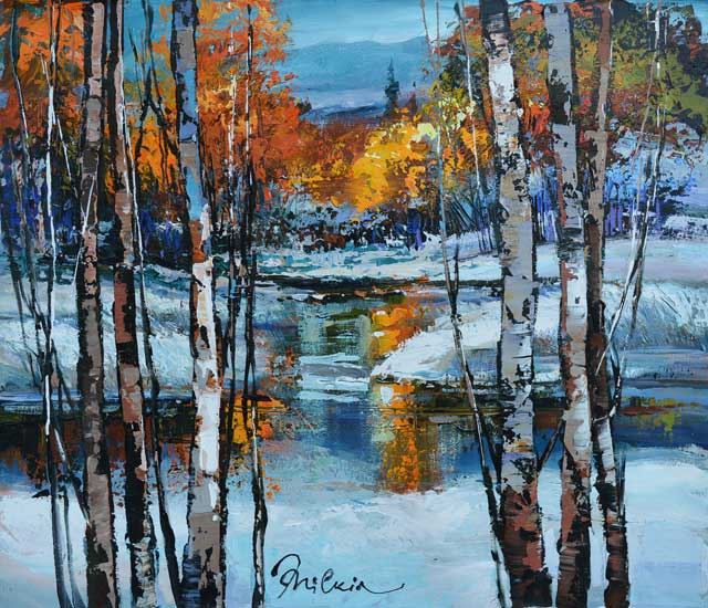Artist: Michael Milkin (b. 1972) - Title: Untitled - Medium: Original Oil on Canvas - Signature: This one-of-a-kind work is hand-signed by the artist at the bottom of the image - Image Size: Approximately 23. 5 inches x 27. 5 inches - Unframed on Unstretched Canvas - Details: This work comes with a Certificate of Authenticity - Biography: In 1964 Michael Milkin was born in Kharkov in the Ukraine. He was a student of Architecture at the town's university and participated in several art exhibitions. After graduating, he worked as an architect, but all the while he kept painting and participating in public exhibitions. Soon after, Milken started teaching fine arts and in the late nineties, his works were exhibited in art shows all over Ukraine, France and Germany - Michael Milkin concentrates on still lifes and landscape, which he paints expressively with thick brushstrokes and vibrant colors. - In 2001 Milkin and his family decided to move to Israel and he now dedicates himself to his art. Milken's work can be found in collections throughout the United States, Ukraine, Israel and France. -
