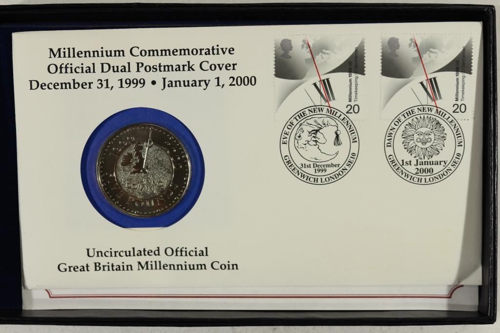 GREAT BRITAIN CROWN COIN AND TIME KEEPING STAMPS
