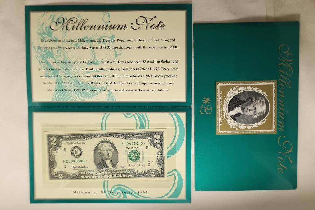 CRISP UNC WITH SERIAL NUMBER STARTING IN 2000. ORIGINAL BEP PACKAGING