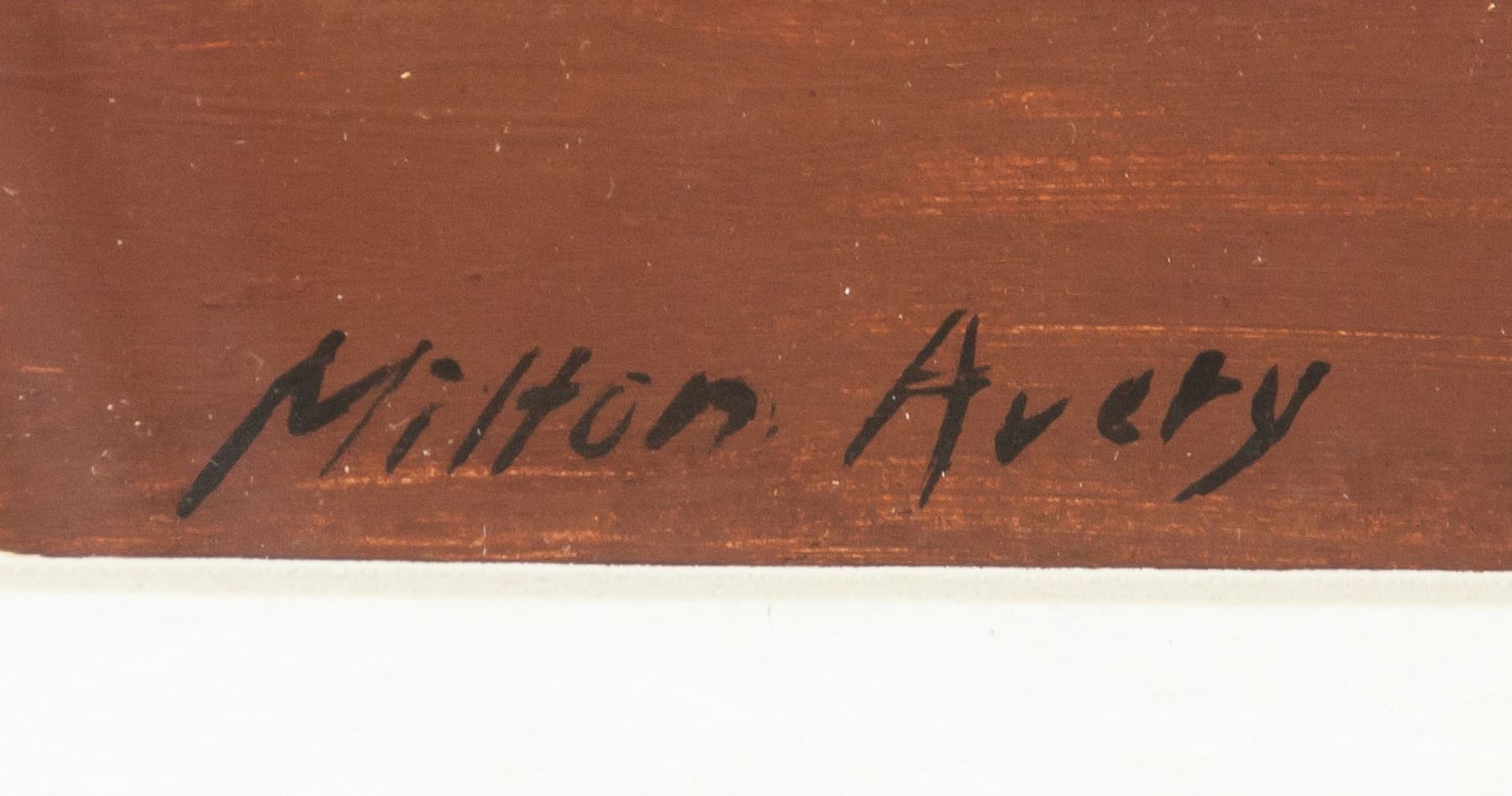 Oil on paper, framed. Featuring a portrait of a woman reading a newspaper. Signed and attr. Milton Avery (American, 1885-1965) on the lower right corner. 26 x 18 cm (10.2 x 7.1 in). Milton Avery was an American painter celebrated for his portraits, still lifes, and landscapes. Working with both oils and watercolors, he used broad swaths of luminous color and stylized forms, to capture the essence of a scene without fixating on details. “I try to construct a picture in which shapes, spaces, colors, form a set of unique relationships, independent of any subject matter,” he once said. Born on March 7, 1885 in Altmar, NY, he grew up in Connecticut and went on to attend art classes while working several jobs in Hartford. Moving to New York in 1925, his wife the artist Sally Michel Avery supported the two of them by working as a commercial illustrator in the city. Over the following years, he befriended other painters of the era, such as Mark Rothko, Adolph Gottlieb, and Barnett Newman, developing the increasingly abstract style exemplified by his late work Green Sea (1954). His paintings remained relatively unknown until 1929, when the Phillips Collection in Washington, D.C. became the first museum to purchase his work. Later in Avery’s life, he often traveled to the mountains of New Hampshire and Vermont during the summer, returning to New York in the winter months. Exhibitions at the Phillips Collection and at the Whitney Museum of American Art further solidified his reputation as a seminal American artist. He died on January 3, 1965 in New York, NY at the age of 79. Today, Avery’s works are held in the collections of the National Gallery of Art in Washington, D.C., the Tate Gallery in London, The Museum of Modern Art in New York, and the Los Angeles County Museum of Art, among others. PROVENANCE: Southern Ontario estate
