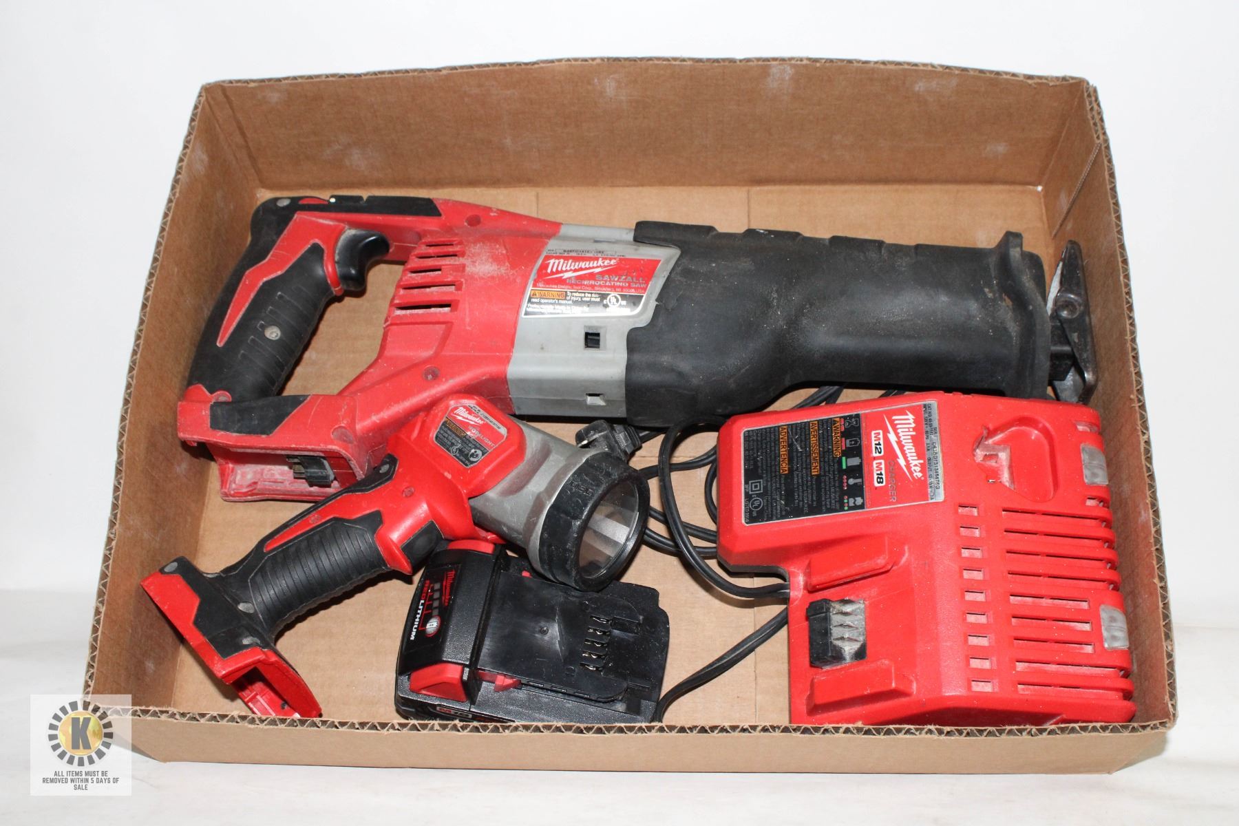 MILWAUKEE SAWZALL, FLASH LIGHT, BATTERY