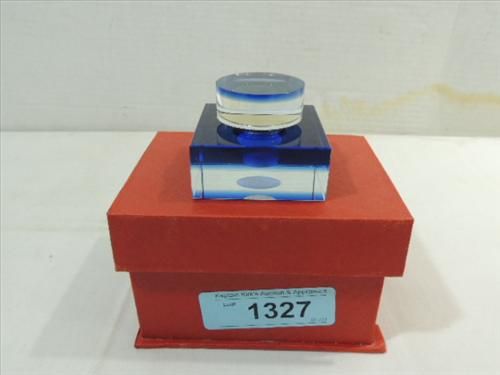 MINCHELLA BLUE CRYSTAL GLASS PERFUME BOTTLE. AS SHOWN. VIEW PICTURE FOR DETAIL.