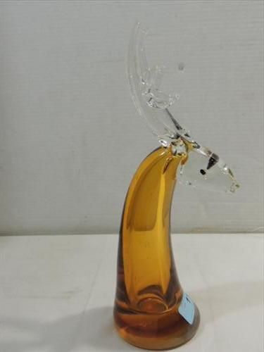 MINCHELLA MURANO STYLE AMBER GLASS REINDEER 13.5"H. AS SHOWN. VIEW PICTURE FOR DETAIL.