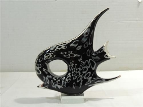 MINCHELLA MURANO STYLE BLACK & WHITE GLASS TROPICAL FISH. 9"L. AS SHOWN. VIEW PICTURE FOR DETAIL.