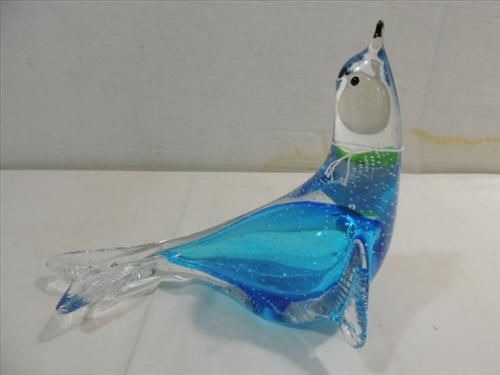 MINCHELLA MURANO STYLE BLUE GLASS SEAL. 10.5"L. AS SHOWN. VIEW PICTURE FOR DETAIL.