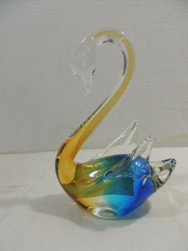 MINCHELLA MURANO STYLE BLUE & GOLD GLASS SWAN. AS SHOWN. VIEW PICTURE FOR DETAIL.