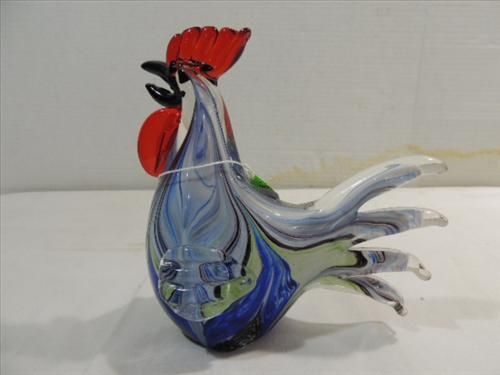 MINCHELLA MURANO STYLE MULTI-COLOR GLASS ROOSTER. 7"H. AS SHOWN. VIEW PICTURE FOR DETAIL.
