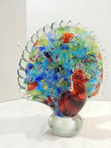 MINCHELLA MURANO STYLE RED & BLUE GLASS PEACOCK. AS SHOWN. VIEW PICTURE FOR DETAIL.