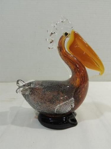 MINCHELLA MURANO STYLE COPPER & SILVER GLASS PELICAN. AS SHOWN. VIEW PICTURE FOR DETAIL.