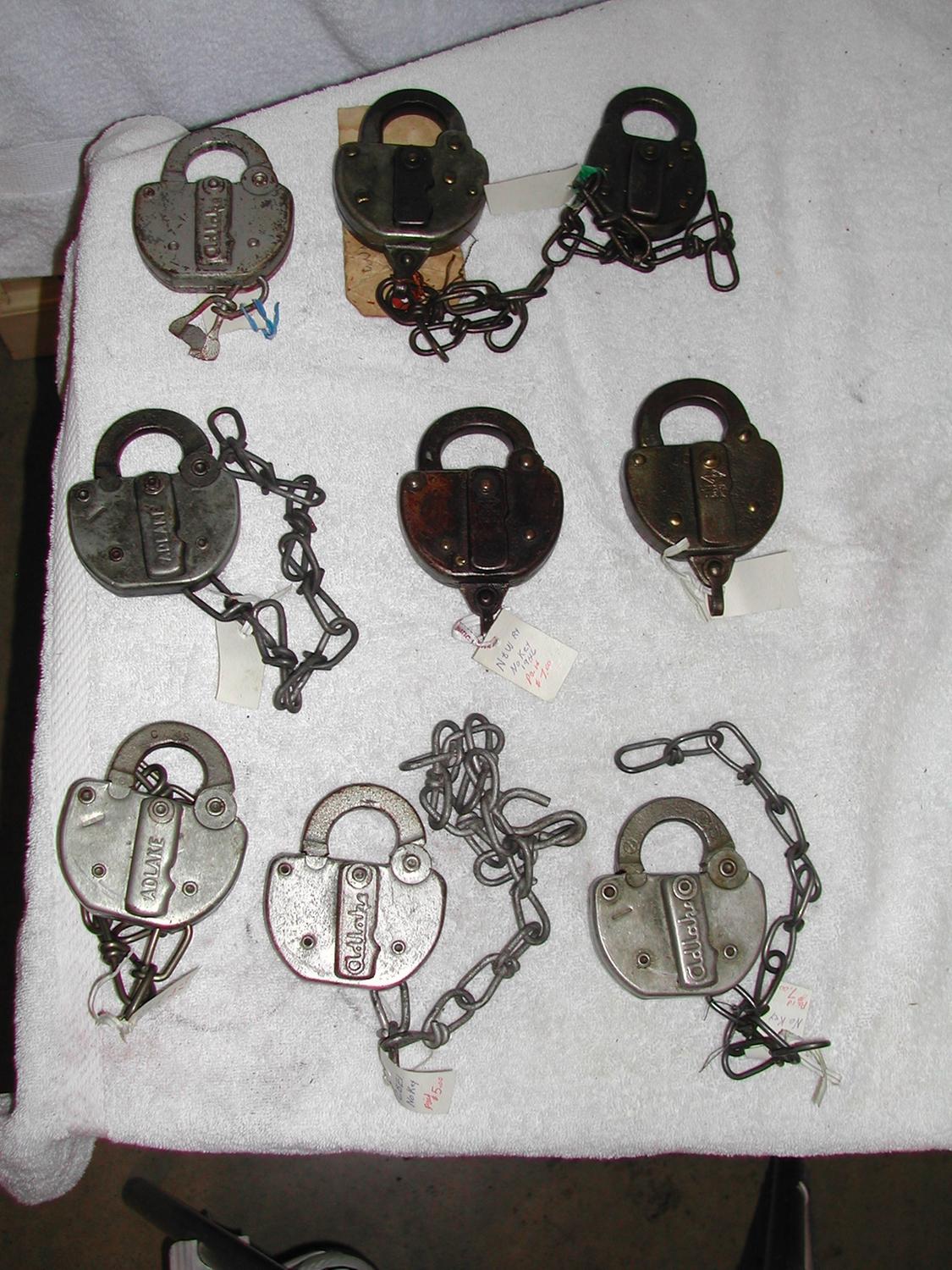 MINE LOCKS , NO KEYS, C&EI, N&W (X'S 2), NYC&STL, SBT CO., FOUR UNMARKED