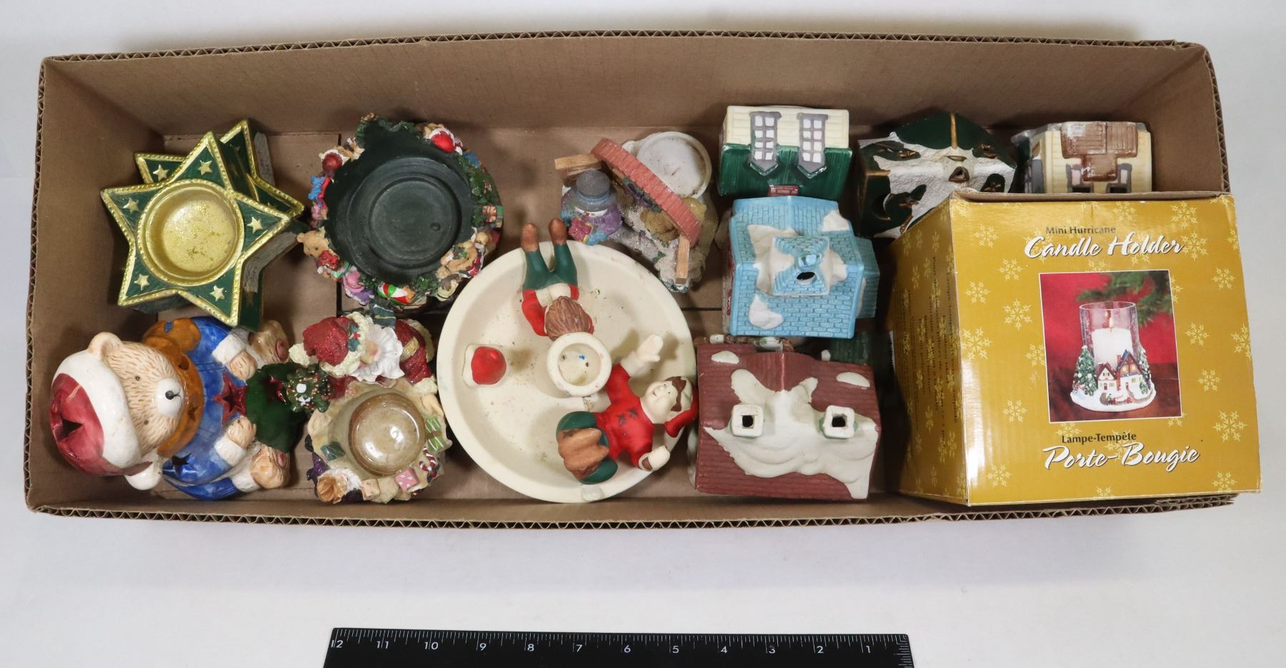 SOLD WITH HOUSE DESIGN CANDLE HOLDERS AND OTHER CHRISTMAS CANDLE HOLDERS
