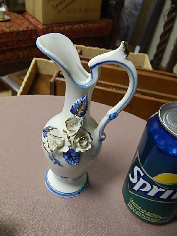 MINI JUG - BLUE TRIM WITH ROSES - MARK ON BOTTOM?