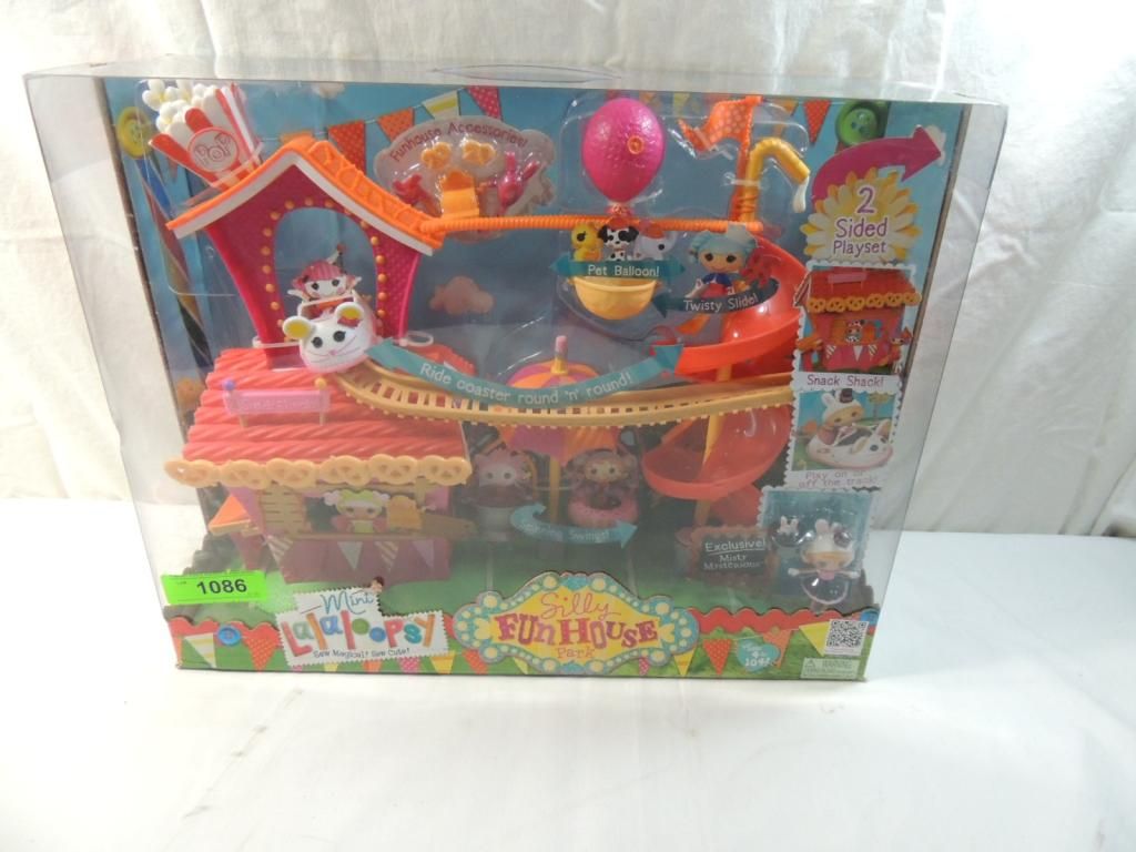 MINI LALALOOPSY SILLY FUNHOUSE PARK. NEW NEVER OPENED. 2 SIDED PLAYSET. SNACK SHACK, PLAY ON OR OFF THE TRACK. RIDE COASTER ROUND AND ROUND. FUNHOUSE ACCESSORIES. PET BALLOON, TWISTY SLIDE. SPINNING SWINGS. GREAT CONDITION. EXCLUSIVE MISTY MYSTERIOUS FIGU