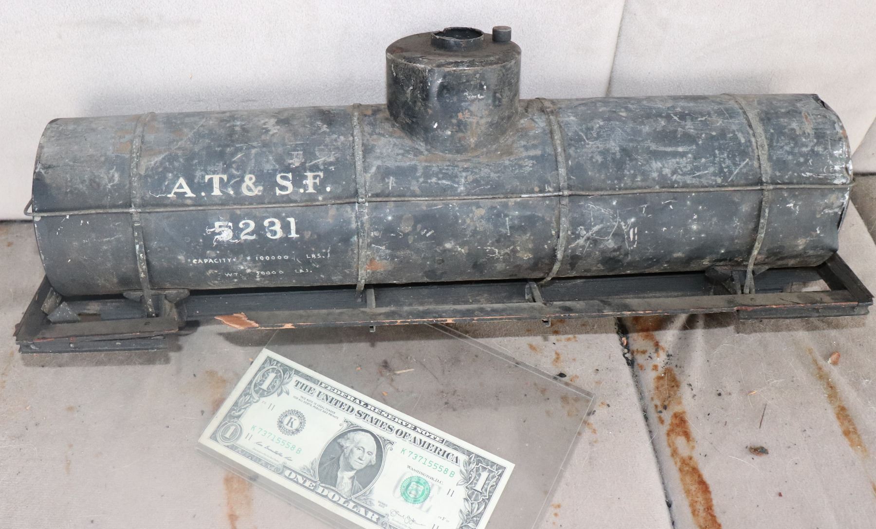 TRAIN CAR A.T & S.F. TANKER ANTIQUE FILMING MINIATURE.