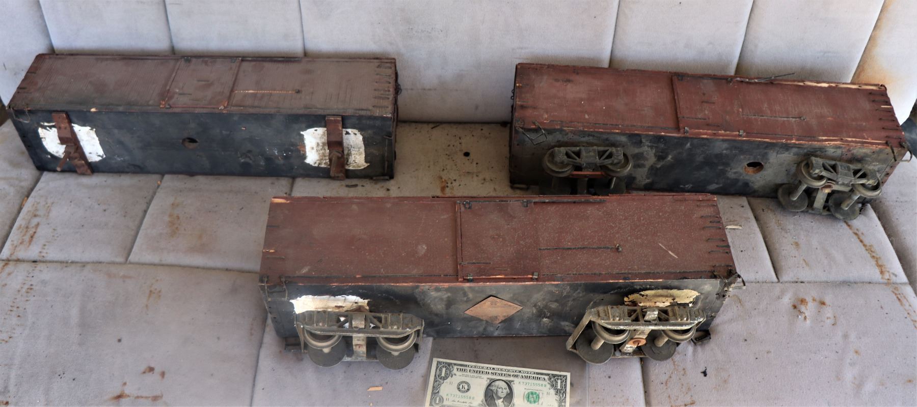 TRAIN BOX CARS ANTIQUE FILMING MINIATURE LOT OF 3