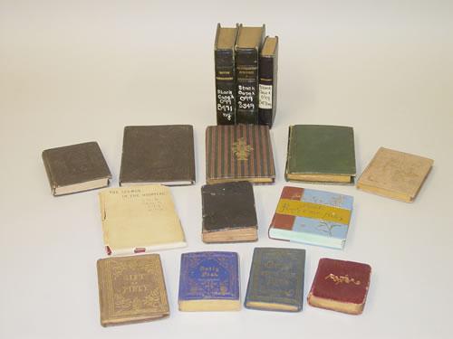 MINIATURE BOOKS OF A RELIGIOUS NATURE. A. Group of 15 Volumes as Listed. Hard Cover. Ex-Library. Good ++ to Very Good Conditions. 48mo - 8 books, 64mo - 2 books, 32mo - 5 books. **The Book of Common Prayer.....Protestant Episcopal Church (nd) London: Eyre & Spottiswoode. **Daily Food For Christians....(nd) The Religious Tract Society-Paternoster Row. **Gems From the Rock (1852) Nashua NH: J.M. Fletcher. **The Sermon in the Hospital by Harriet Eleanor Hamilton King (1904) NY: Thomas Whittaker. **The New Testament....translated out of the Original Greek...WITH CLASP (nd) Oxford: University Press. **Hymns Adapted for the Worship of God, Selected and Sanctioned by the Synod of Relief (1833) Glasgow: Plackie & Son. **Bible Forget-Me-Nots (nd. circa 1890) London: Marcus Ward & Co. Ltd. **A Chaplet of Flowers, Comprising a Scripture Text...(nd) NY: American Tract Society. **Gift of Piety: or Divine Breathings - Stereotyped Edition (circa 1850) Boston: J. Buffum. **Daily Texts with Verses of Hymns...(nd) NY: American Tract Society. **The Polymicrian Greek Lexicon to the New Testament....by W. Greenfield (1829) London: Samuel Bagster. **Novum Testamentum ad Exemplar Millianum...by Gulielmi Greenfield [1st vol. of the Polymicrian Editions] WITH MAPS (1829) London: Samuel Bagster. **Novi Testamenti Graeci Tameion; Aliis Concordantiae....by Erasmi Schmidii & Gulielmo Greenfield (1830) London: Samuel Bagster. **Sacred Hours or Meditations on Every Day of the Week...by A Lady (1849) NY: E. Hutchinson. **The Book of Proverbs (nd) NY: American Tract Society.