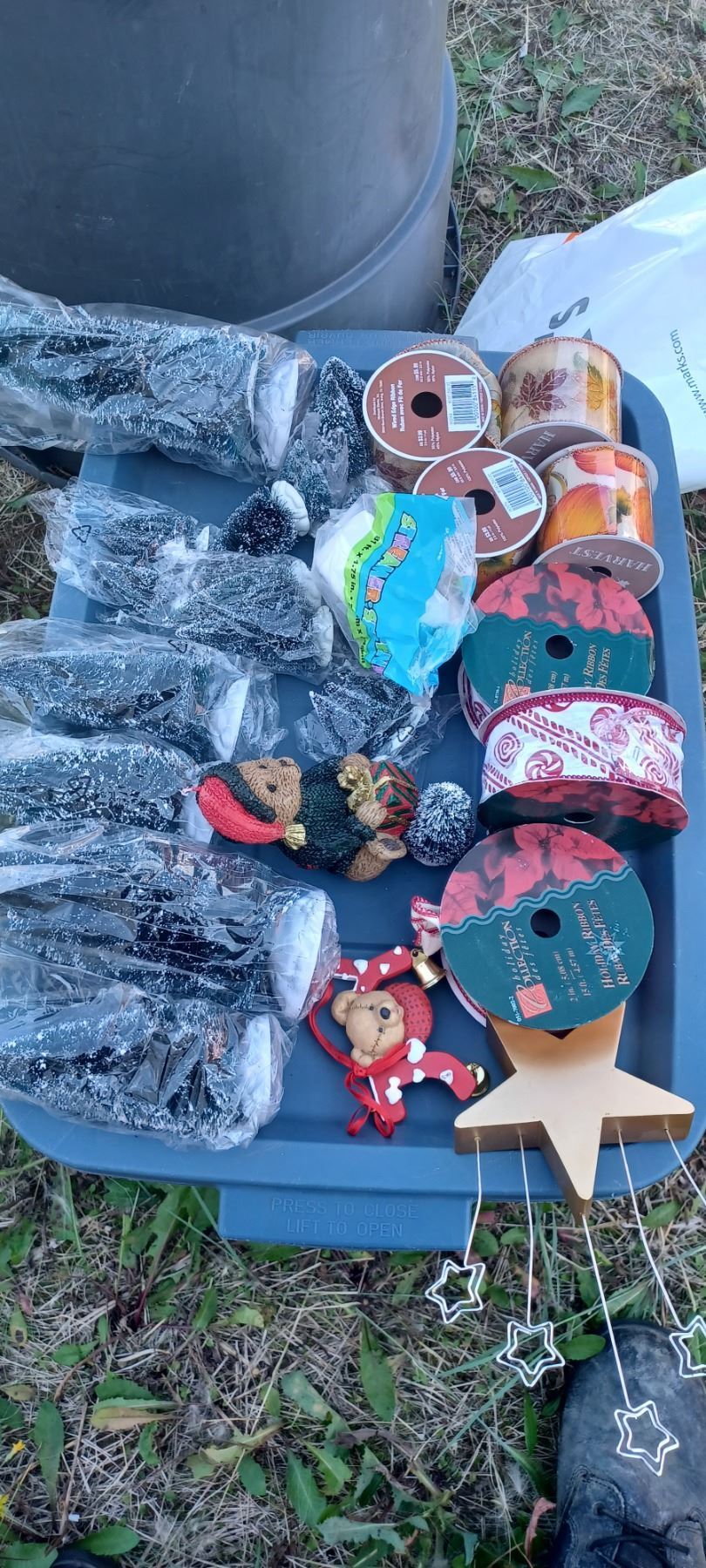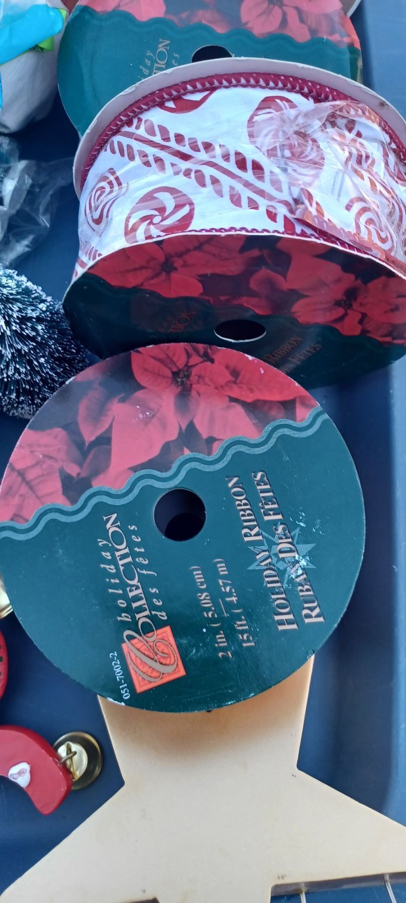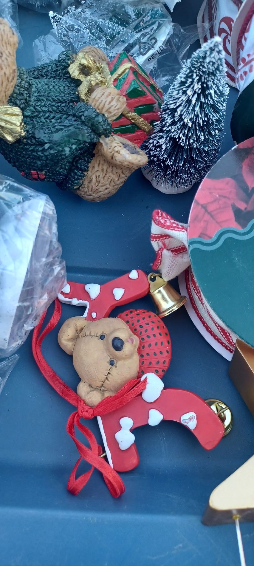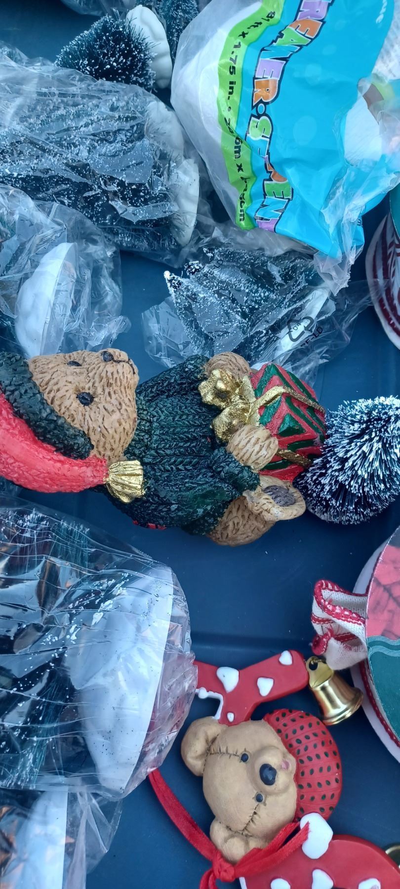 MINIATURE CHRISTMAS TREE; BEAR ORNAMENTS; RIBBON