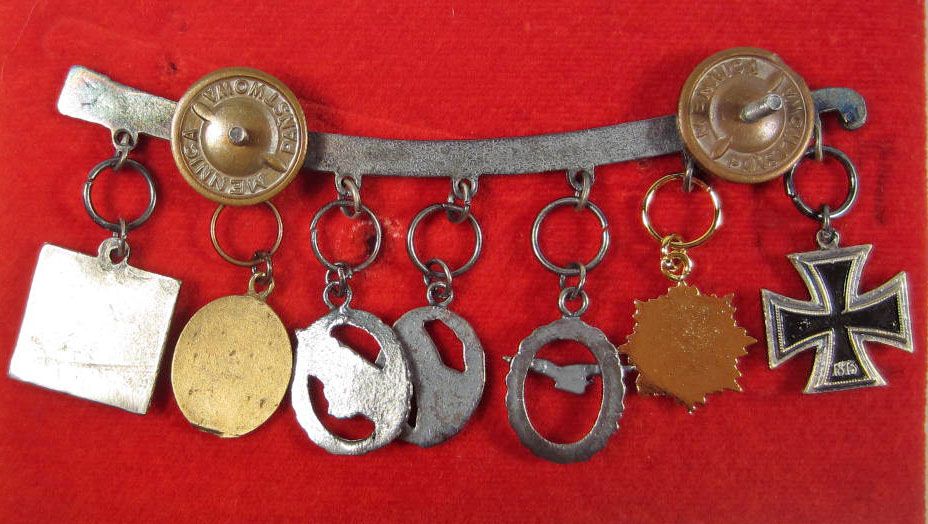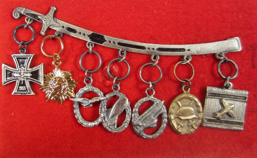 MINIATURE GERMAN NAZI CHARMS ATTACHED TO SWORD PIN