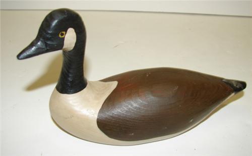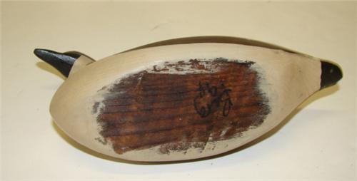 MINIATURE GOOSE DECOY CARVING. Signed “Berg” on bottom. 4.25”H, 7.5”L