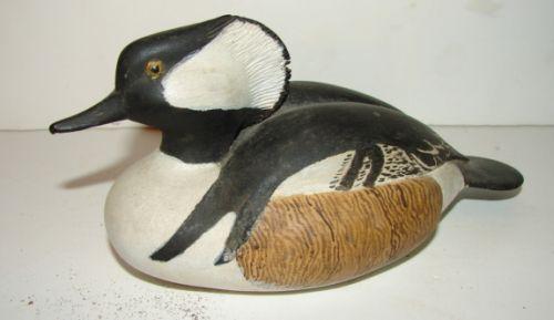 MINIATURE HOODED MERGANSER DECOY. Tack eyes. 7" L