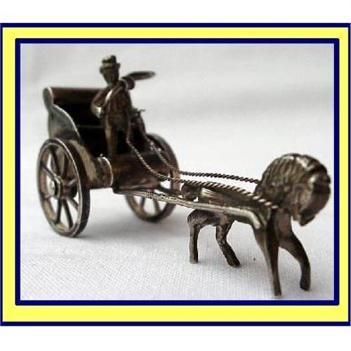 <table width="100%" border="0" cellspacing="0" cellpadding="4"><tr><td><em> </em></td></tr><tr> <td width="100%"> 19th century, sterling silver miniature horse pulling a buggy with driver. Moving parts. Made in Holland. 1 3/8inches high. 2 1/4inches front to back. A hatted driver holds the reign and a large whip. The horse prances along. Fine detail to mane. Dutch silver hallmarks. No damage, dings or dents. Ask about the other silver miniatures from this collection. </td></tr><tr> <td> </td></tr><tr> <td>Reference #: 1248</td></tr><tr><td>Condition:See Description</td></tr><tr><td>Year:See Description</td></tr><tr><td>Title:MINIATURE HORSE & BUGGY W DRIVER DUTCH SILVER</td></tr><tr><td>Location:Boca Raton</td></tr></table>