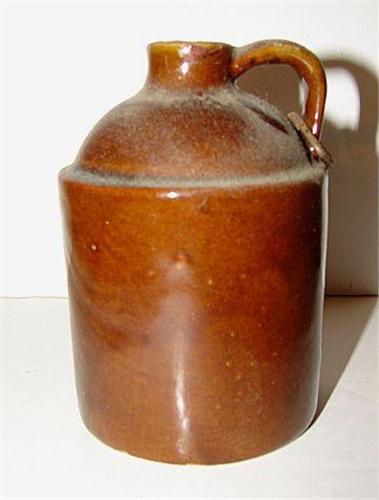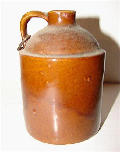 MINIATURE STONEWARE JUG. Brown glaze. 4.25” H