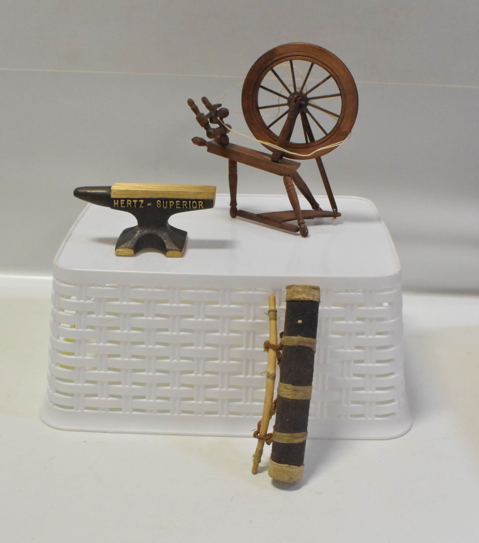 MINIATURE WOODEN SPINDLE+SOLID BRASS ANVIL