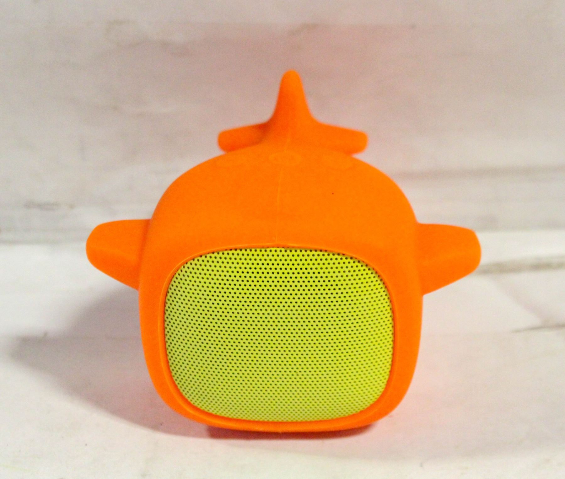 DESIGN WITH A ORANGE BODY AND A YELLOW SPEAKER GRILLE FEATURES A BUILT-IN LITHIUM BATTERY AND SUPPORTS VOICE CALLS