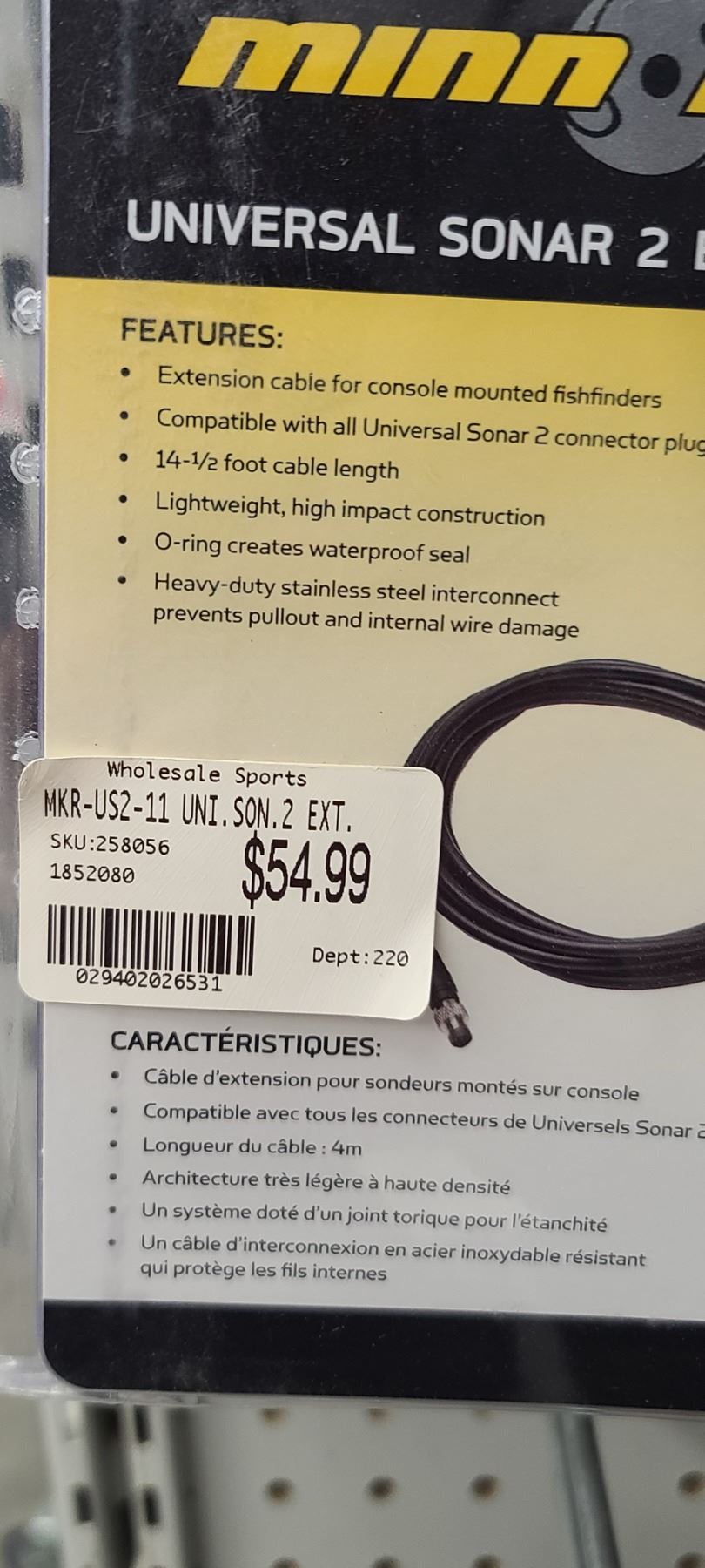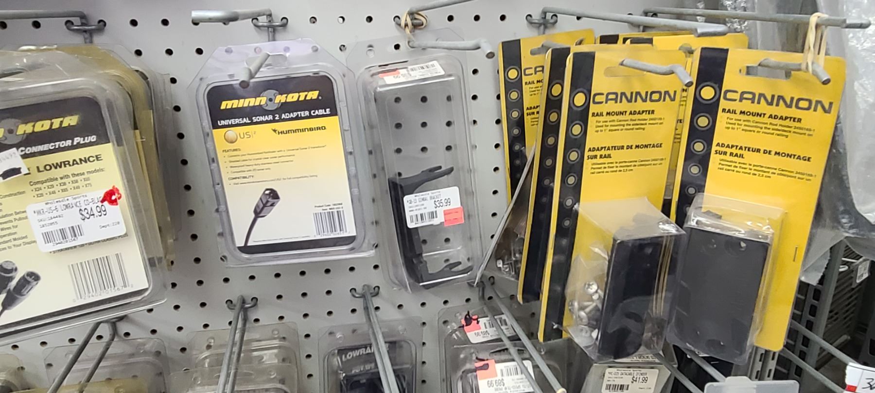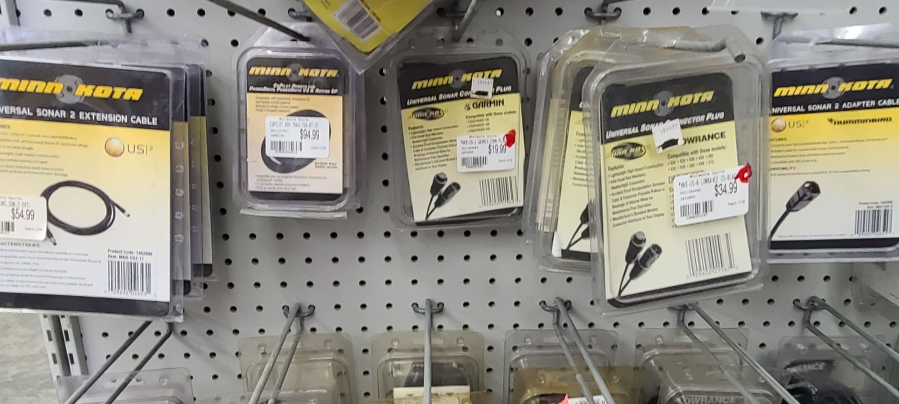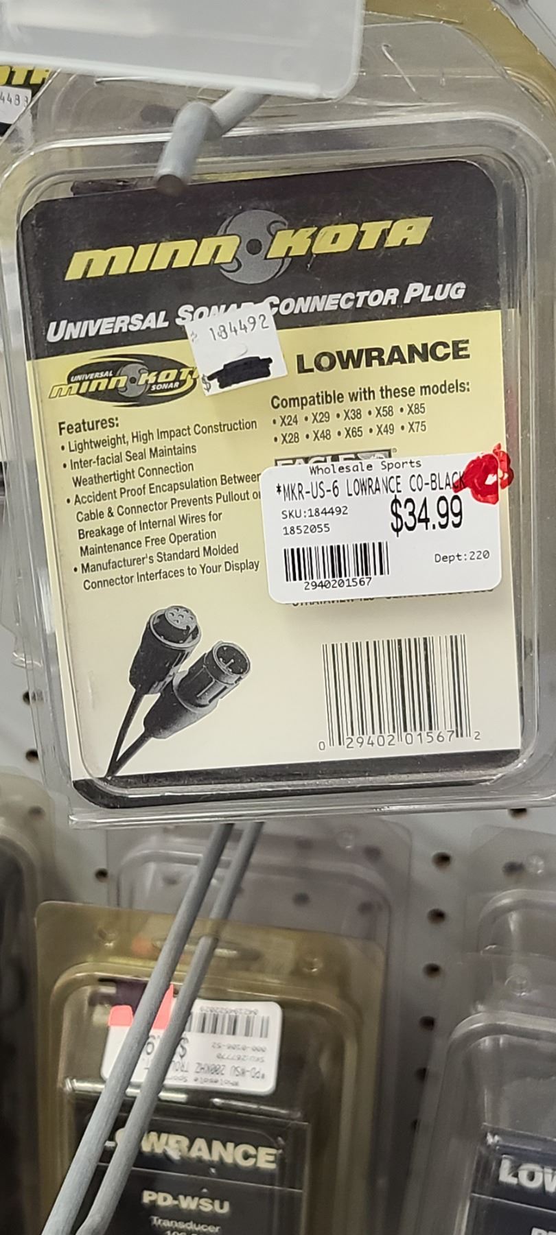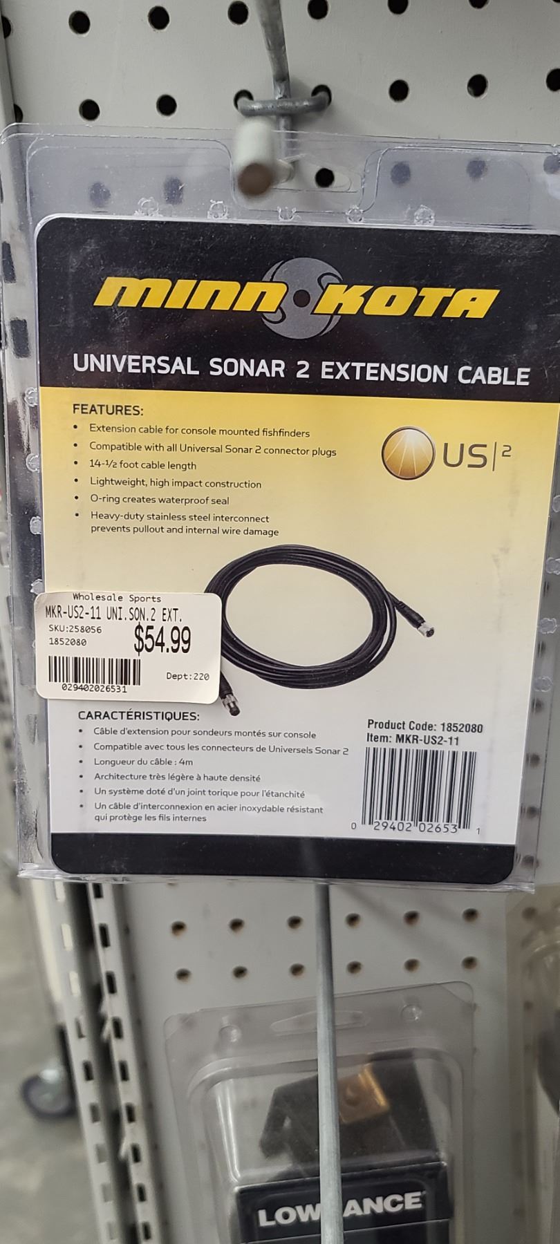 MINN KOTA UNIVERSAL SONAR 2 EXTENSION CABLE X3, MINN KOTA COPILOT REMOTE FOR POWERDRIVE, POWERDRIVE V2 AND RIPTIDE SP X3, MINN KOTA UNIVERSAL SONAR CONNECTOR PLUG (GARMI), MINN KOTA UNIVERSAL SONAR CONNECTOR PLUG (LOWRANCE) X6, MINN KOTA UNIVERSAL SONAR 2 ADAPTER CABLE HUMMINBIRD, LOWRANCE GB-13 GIMBAL BRACKET , CANNON RAIL MOUNT ADAPTER X8 RETAIL VALUE $866